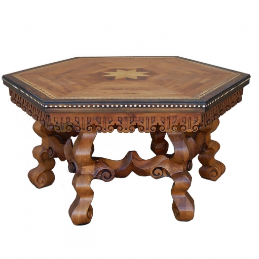 MESA DE CENTRO HEXAGONAL CON MARQUETER